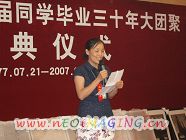 7月21日,我校七七届高中毕业生280余人借座国际大酒店,举行毕业三十周年大团聚庆祝活动。刘忠保副校长(下图)代表母校到会祝贺。