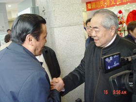 范当世是清末南通近代教育奠基人之一,也是我校创始人之一;范曾是我校1955届校友,范当世的曾孙,当代中国著名画家。此次开馆仪式,范曾出席并向家乡党政领导表达了自己参与家乡文化建设的满腔热情。我校校长缪建新出席了开幕式并与范曾愉快交谈(右上图)。开馆仪式由中央电视台著名主持人朱军和我市市委宣传部部长张小平共同主持。