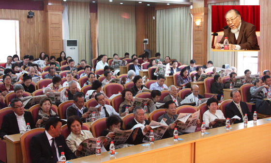 主席台上的中华中学校友会名誉主席潘老先生手执第82期《通中报》,指着第11版“母校情深”四个字热泪盈眶,高声地向校长请求“明年给我们办华侨子弟班”(下图)。缪校长欣然应允。