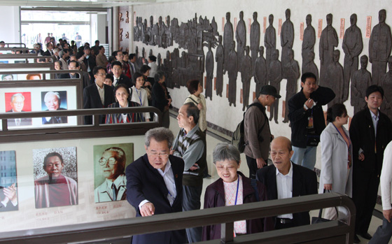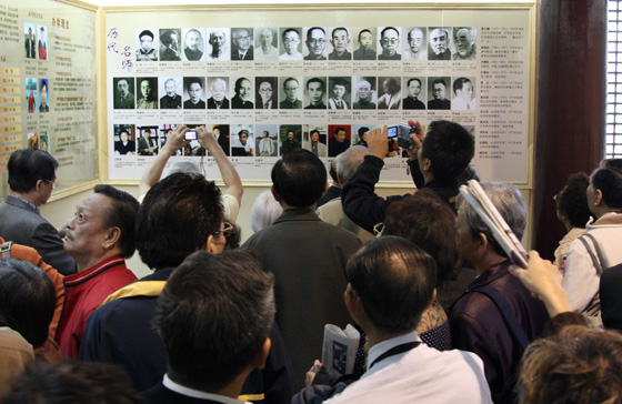在图书馆的校史长廊里,通中前辈校友的事迹令来宾赞叹。