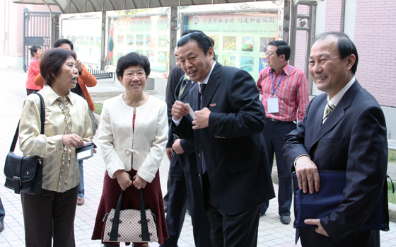 陪同来访的有全国侨联副主席杨玉环(下图左一)、江苏省侨联主席郁美兰(左二)、南通市侨联主席镇翔(右一)。我校校长缪建新、副校长刘忠保、党政办主任成平、校史办主任任美英全程陪同接待。