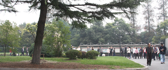 深秋的校园里,远方的客人漫步在李先生早年踏上师途的学校,无限思念涌上心头。