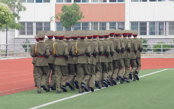 坐在场外观看兄弟学校表演,依旧军纪严明。