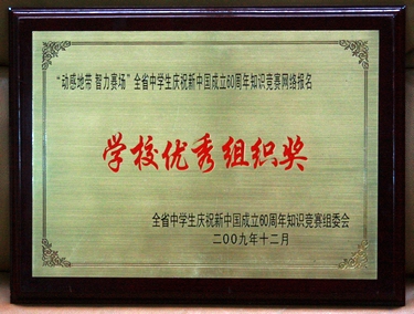在2009年第四季度由中国移动江苏公司和江苏教育电视台联合举办的全省中学生庆祝新中国成立60周年知识竞赛活动中,我校参赛学生以特别优异的成绩一举夺得南通巡回站赛冠军、全省网络队赛冠军和全省网络队赛季军三项大奖。 为表彰我校学生的优异表现,竞赛组委会特向我校颁发学校优秀组织奖。 |