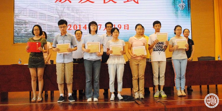 7月19日上午8:30,全体新高一学生在新健雄馆参加了2014年南通中学“新东方优秀学生奖”颁发仪式。会上,贾春一校长代表南通新东方学校向南通中学捐赠8.3万元,我校校长姚天勇向南通新东方学校颁发了捐赠荣誉证书,副校长沈惠祥宣读了“新东方优秀学生奖”章程和获奖名单,获奖的38名同学都是各年级的优秀学生,值得一提的是本次奖励对象还包括刚录取我校的高一新生11人。会上,贾校长和姚校长分别讲话。姚校长还从学校历史文化和如何适应通中的学习等方面给全体高一新生上了一课。高三毕业生马鸿超代表获奖学生发表感言。会议由学生处副主任邱允莉主持。