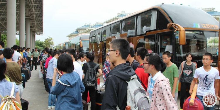 上午8:00,18个班700余名新生分乘17辆大巴从学校出发,10:00左右车队抵达基地。班主任与教官交接名单后,全体新生即按班级顺序依次编为第1-17中队列队。