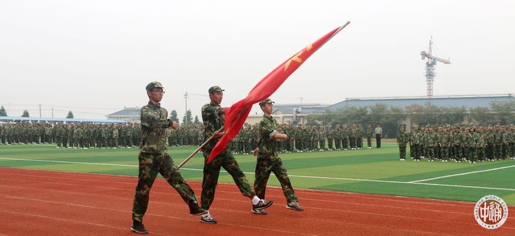升国旗、奏国歌,迎队旗,在雄壮的进行曲中,党委书记朱全中在解放军理工大学教官的陪同下,检阅列队。