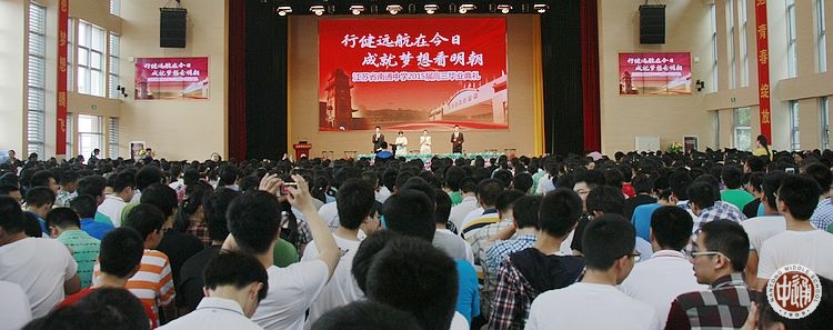 行健远航在今日,成就梦想看明朝!6月11日上午,2015年高考结束后的第二天,我校2015届高三毕业典礼在学校新健雄馆隆重举行。典礼由高三年级姚姚、陆凌志、蔡嘉辰、刘宇隆4位学生主持。