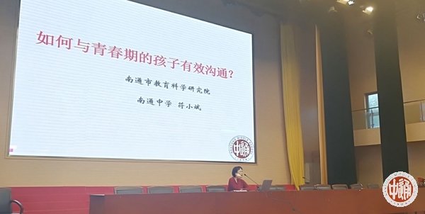 接着,国家二级心理咨询师、南通市教育科学研究院心理教育兼职教研员、我校符小斌老师作了《如何与青春期孩子有效沟通》的主题讲座。讲座从家长与学生如何相处,如何构建良好的家庭环境两个角度入手,将心理学知识应用于生活实际,深入浅出,引人入胜。