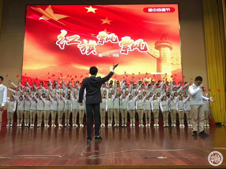 此次合唱比赛的参赛队以相邻两个班级为组合,共有十支队伍参赛。在自选曲目环节,开场,高一7班、8班以一首《红旗飘飘》唱出了对祖国最诚挚的祝福。高一13、14班带来的《精忠报国》旋律激昂,令全场为之振奋。高一1、2班带来了极富西藏特色的歌曲《梦的卓玛》,领唱嘎玛曲宗的美妙歌声让现场观众领略了雪域天籁之声。高一17、18班身着统一的民国服装,一段充满激情的朗诵,一曲气势宏伟的歌曲,让我们重温那段经典的誓言——保卫黄河!保卫华北!保卫全中国!当《旗帜颂》的旋律响起,高一5、6班用最美妙的和声表现了亿万中华儿女蓬勃向上的热情以及共同绘就美好中国蓝图的信念和决心。“有了强的国,才有富的家。” 高一11、12班同学用一曲《国家》表达了“国富民强大,家和万事兴”美好祝福。高一AP班的同学们虽然人数远比不上其他班级,但他们也以独特的小组唱形式将《平凡之路》演绎得淋漓尽致。一首《明天,你好》是高一15,16班同学对未来的憧憬与永不放弃的精神呈现,配以悠扬的小提琴伴奏博得了观众们的阵阵掌声。高一9、10班以高昂的热情唱响《我和我的祖国》,精致优美的舞蹈让人连连赞叹。航空班压轴出场,他们身着蓝色军装,手戴洁白手套,脚蹬黑色马丁靴以最标准的军人姿势屹立在舞台中央。一曲《打靶归来》鼓舞着我们励精图治,勇往直前,也坚定着我们迈向美好未来的信念。比赛现场,各支参赛队都演唱了校歌《通中的青春》,唱出了身为通中人的骄傲与自豪。最后全体师生在艺术学科蒋维老师的指挥下高唱国歌,激扬豪迈的歌声将整场比赛气氛推向了最高潮!评委们从参赛各班的选曲难度、演唱效果、精神风貌等方面进行了综合考评,最终评出特等奖,一等奖,二等奖。(详见附录)