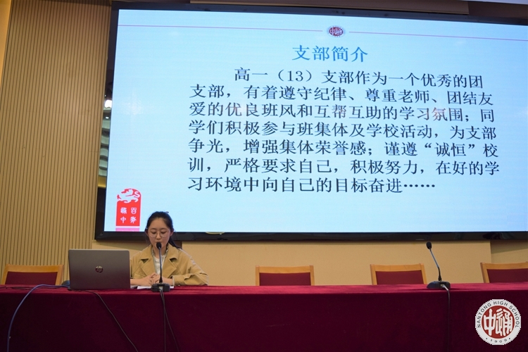 高一13班班长秦舟同学分享了她们班日常团组织活动的开展情况及相关经验,并以本班的“学生干部值周制”为例,宣传了他们班注重班级人文管理的经验。