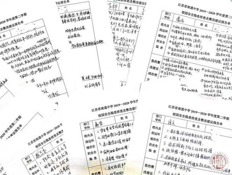 本次活动全校有56个班级2716名学生和217名教职工积极参加排查并递交了报告表,排查出的问题主要集中在学校疫情防控、校舍设施安全、校园用电设施安全、消防安全、校内环境、周边环境、心理安全、食品安全、其他安全问题等九个方面;本着对全校师生安全高度负责的态度,学校党政办对存在的安全隐患与问题分别进行梳理分类,并明确责任部门,督促相关职能部门限期整改,排除隐患。学校后勤、安保等部门在接到安全隐患问题清单后,立即行动起来,即知即改,坚决做到防患于未然,全力为师生工作、学习和生活营造良好、安全的校园环境。