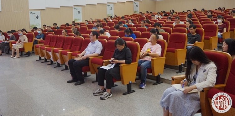为及时总结上半学期学校教育教学工作,明确下阶段工作目标和重点工作,5月20日下午,学校在科学楼三楼报告厅召开全体教师大会,进行期中教育教学工作总结点评。会议由副校长陈建云主持。