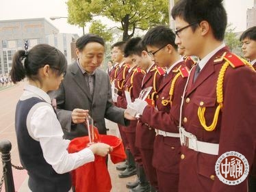 江苏省南通中学校园内有一道亮丽的风景线:无论是炎炎夏日,还是数九隆冬,每周伊始,总有一群人着装统一、步伐铿锵,始终秉持着如初的态度与信仰,出旗、折旗、升旗,小心谨慎,一丝不苟。对于他们而言,每一次升旗都是心灵的洗礼与升华,高高飘扬的三面旗帜庄严、神圣而分外的亲切。 5月6日上午的升旗仪式时间,2013届国旗班交接仪式在学校本部操场隆重举行。仪式由高一16班张宇诗主持。 |