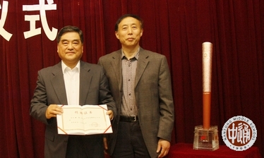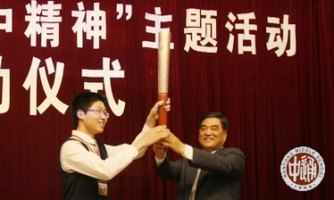 全体校友和来宾观看了通中百年风雨传奇校史短片后,校党委书记、关工委主任韩明飞热情致辞:“百年通中是一座文化和精神的富矿,通中精神无疑是其中最珍贵的宝藏,是百年通中走向更加辉煌的源泉,是我们学校,也是通中学子的核心发展力。” 韩明飞还向1963届校友、已退休的通中前副校长姚侃先生颁发捐赠证书,表彰并衷心感谢姚先生将2008年作为北京奥运火炬手的珍贵纪念品奥运火炬捐赠给母校(下左图);学生会高一分会主席孙越从前辈手中接过象征通中人心系祖国、通中精神代代相传的光荣火炬(右)。 |