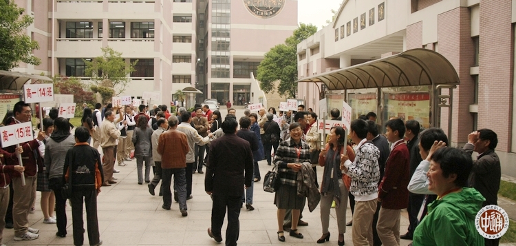 第三课的下课铃声响起,启动仪式结束。高一和高二年级各班的同学举着班级标牌(上图),将校友们迎到自己班上,在各自教室里举办“结对传承通中精神”主题班会。按照同学们此前的联络,每个班分别与跨度约20年的两届校友相认交流,并讨论后续的活动计划。