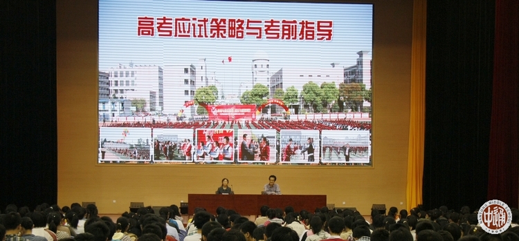 5月29日下午,我校在新体育馆举办“高考应试策略与考前指导”辅导报告会,全体高三年级同学出席。报告会由教务处副主任殷月萍主持,校长姚天勇主讲。 辅导报告主要内容为:1、合理认识试卷的难度分布,充分获取自己的得分点;2、恰当把握试卷的难度梯度,从最利于自己发挥的问题入手;3、科学调整生物钟周期,使体能和智能的兴奋期高峰与高考的时辰同步。 |