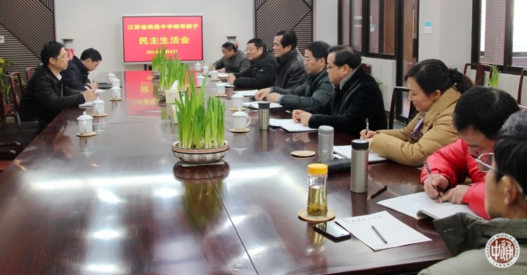 根据南通市委的统一部署,元月10日上午,我校领导班子召开民主生活会,学校领导班子全体成员:姚天勇、朱全中、刘忠保、沈惠祥、陈建云参加会议,老领导韩明飞、许建平,工会主席陆刘华列席会议。会议由党委书记朱全中主持。南通市委组织部副部长、两新工委书记张辉,市委组织部组织处副处长、两新工作处处长张明星应邀到会进行指导。