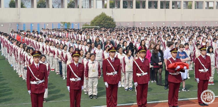 第二课后,师生一行参加了我校每周例行的升国旗仪式。