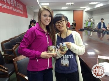 马科姆郡教育代表团的家长代表Maggie和学生代表Ann畅谈了六天来的体会与感受,我校师生的热情好客、接待家庭的细致周到均给大洋彼岸的来客留下了极其深刻的影响。Maggie两年前曾访问过我校,重游故地,我校的蓬勃的发展态势让她倍感惊叹。