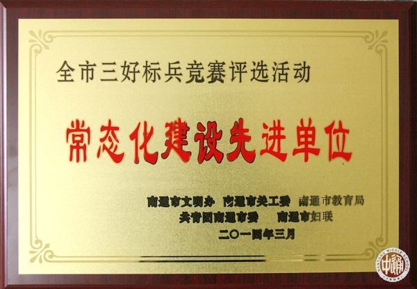 4月18日下午,南通市三好标兵竞赛评选活动长效机制建设现场推进会在南通市北城小学举行。推进会上,市文明办、市关工委、市教育局、团市委、市妇联联合对荣获“南通市十佳三好标兵”、“南通市三好标兵竞赛评选活动常态化建设先进单位”的个人及单位进行了表彰,我校荣获“南通市三好标兵竞赛评选活动常态化建设先进单位”荣誉称号。