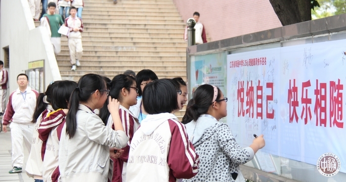 5月19日中午,随着师生“悦纳自己,快乐相随”横幅签名活动的开展,我校5.25心理健康宣传周活动拉开帷幕。