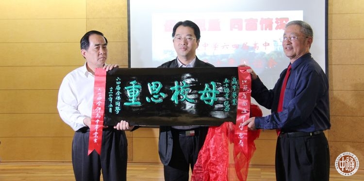 同学们纷纷表示,尽管每个学子的“原子量”不同、“化合价” 不同、“燃烧值”也不同,但是在母校通中这座“加速器”的作用下,在老师们的心灵“催化剂”的作用下,每个人都获得巨大的动能、势能,经过一系列物理、化学反应,焕发出数倍的能量。同学们还向母校赠送“母校恩重”的牌匾,充分表达半个世纪来凝聚在大家心头的感恩之情。一群白发苍苍的老同学还表演了几个自导自演的小节目,用歌声、琴声、掌声、笑声来表达对老师和母校的热忱之爱和感恩之心。特别是女声小合唱《老师我想你》将气氛推至高潮。背景屏幕上出现了一段段老师年轻时和现在的照片,他们当时风度翩翩、才华焕发,而现在虽然白发满头,却精神矍铄。五十年风风雨雨,五十年寻寻觅觅,老师们践行了陶行知先生“捧着一颗心来,不带半根草去”的名言,就像一支支红烛,燃烧了自己,照亮了学子。在半个世纪的社会实践中,64届高中学子们为共和国大厦增添了一根根梁柱、一块块砖瓦、一颗颗螺钉。今天,他们面对母校、面对老师,汇报人生的感悟心得,总结“诚恒”的世范之典,无愧于从中学堂街走出去的通中人。